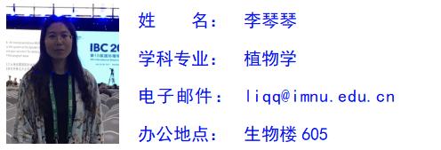 李琴琴,女,汉族,中共党员,博士,副教授,硕士研究生导师。2023年2月入选内蒙古自治区“草原英才”工程青年创新人才。从事植物系统分类学、分子进化生物学领域的研究工作。先后主持国家自然科学基金项目2项、内蒙古自然科学基金项目2项。发表第一作者或通讯作者论文16篇;出版专著2部。承担本科生植物学、植物学实验、植物学实习等相关课程的教学和专业实习指导,承担研究生植物生物学、植物系统学课程的教学。