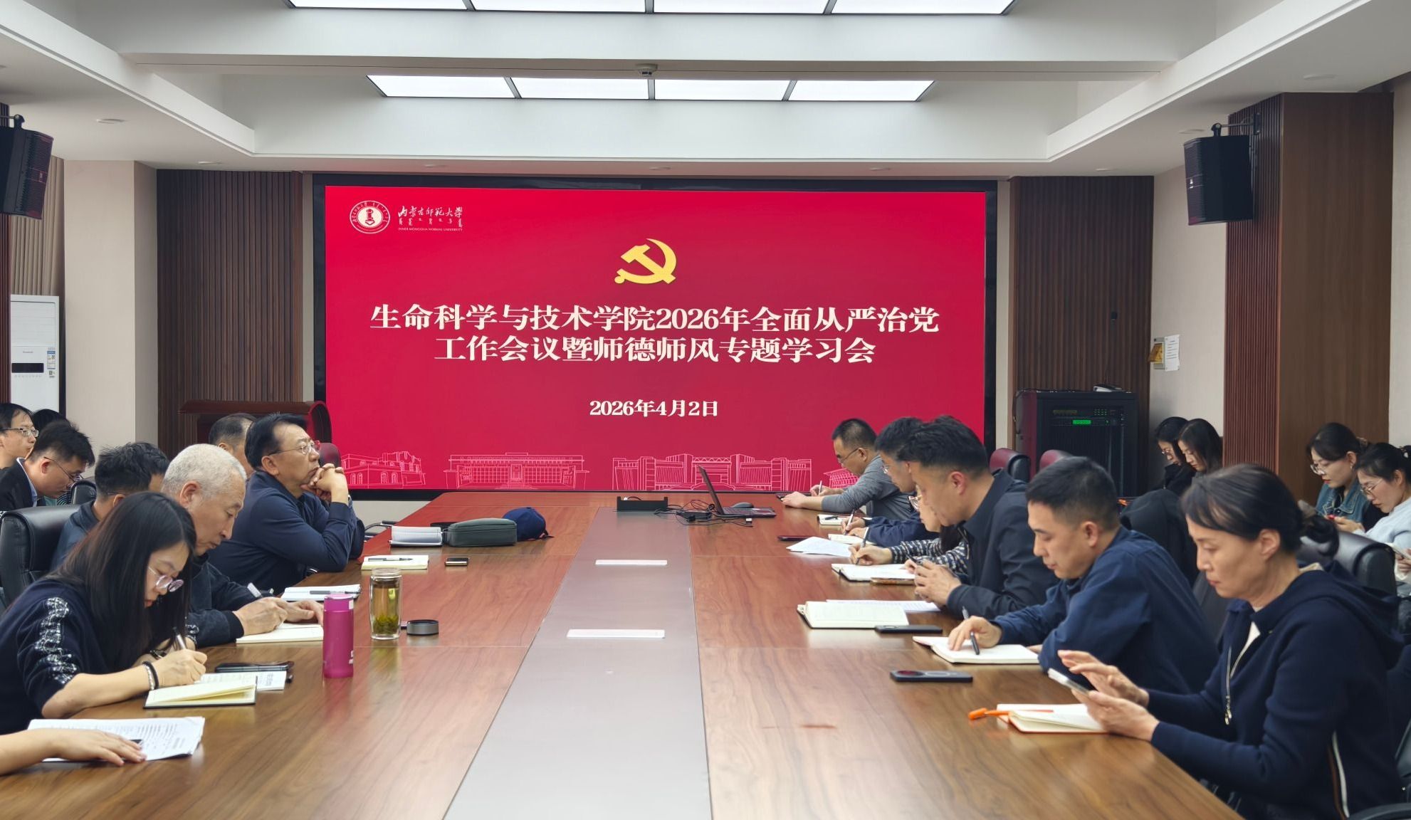 4月2日下午,学院在生物楼三楼会议室召开2026年全面从严治党工作会议暨师德师风专题学习会。会议由党委书记苏小波主持,全院教师参加会议。