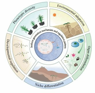 蛋白异构体(Protein Isoforms,PIs)是指由同一基因通过不同的剪接(splicing)、多聚腺苷酸化(polyadenylation,APA)、起始(initiation,AI)和核糖体移框(ribosomal frameshifting,RF)事件产生的多种蛋白质版本。这些过程发生在基因表达的转录和翻译阶段,从而使得单一基因能够产生多个不同的蛋白质产物,每个产物可能具有不同的结构和功能。该论文全面总结了PIs在植物中的起源、功能、调控模式,讨论了它们对未来分子生态学和分子生物学研究的挑战和机遇,同时提出PIs的存在不仅显著增加了基因组信息的复杂性,而且极大地丰富了调控网络,增强了其灵活性。此外,该论文进一步总结了植物中PIs的代表性例子,并根据现有研究归纳了它们的调控模式,包括差异亚细胞定位、差异互作结构域、蛋白质复合体的差异降解速率以及不同异构体之间的竞争或干扰。展望未来,该论文着重指出了研究PIs的关键领域,包括使用冷冻电镜和X射线晶体学分析PIs的三维结构特征、利用空间转录组学确定PIs的时空表达模式,以及研究PIs在植物代谢调控、环境适应、器官发育和物种形成中的分子机制。