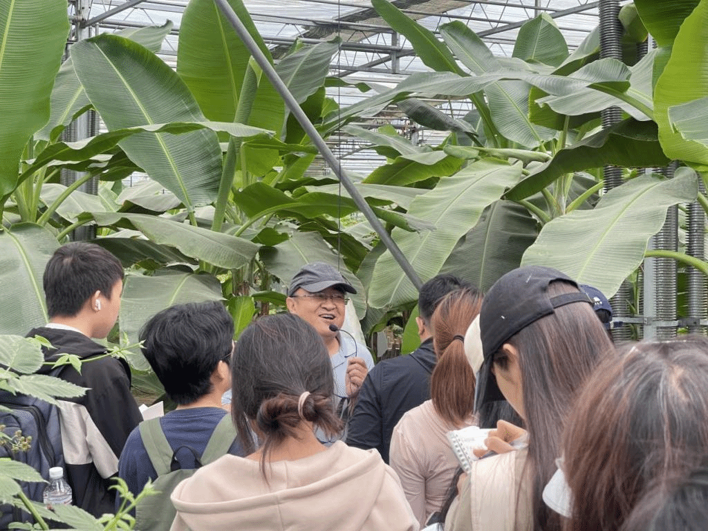 旅途第一站,我们首先来到了赛罕都市现代农业园区。它是一座集科普教育、生态保护、观光旅游为一体的园区,主要包括热带雨林园区、观赏花卉园区和无水栽培园区。园区模拟热带雨林的生态环境,通过引进丰富的热带植物,向同学们展现了热带雨林的独特魅力和生物多样性。